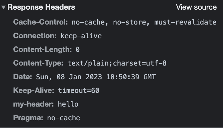response.setHeader("my-header","hello"); // 임의의 헤더 생성하기