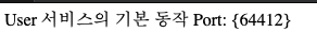 return "User 서비스의 기본 동작 Port: {" + port + "}";