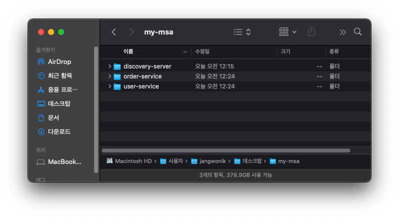 프로젝트를 각각 user-service와 order-service 로 각각 생성하자