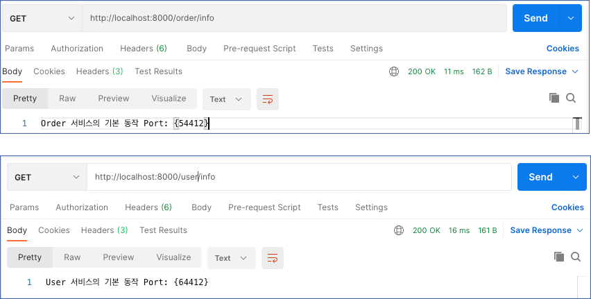 그리고 다시 요청을 보내면 각각 잘 동작하는 것을 볼 수 있다.