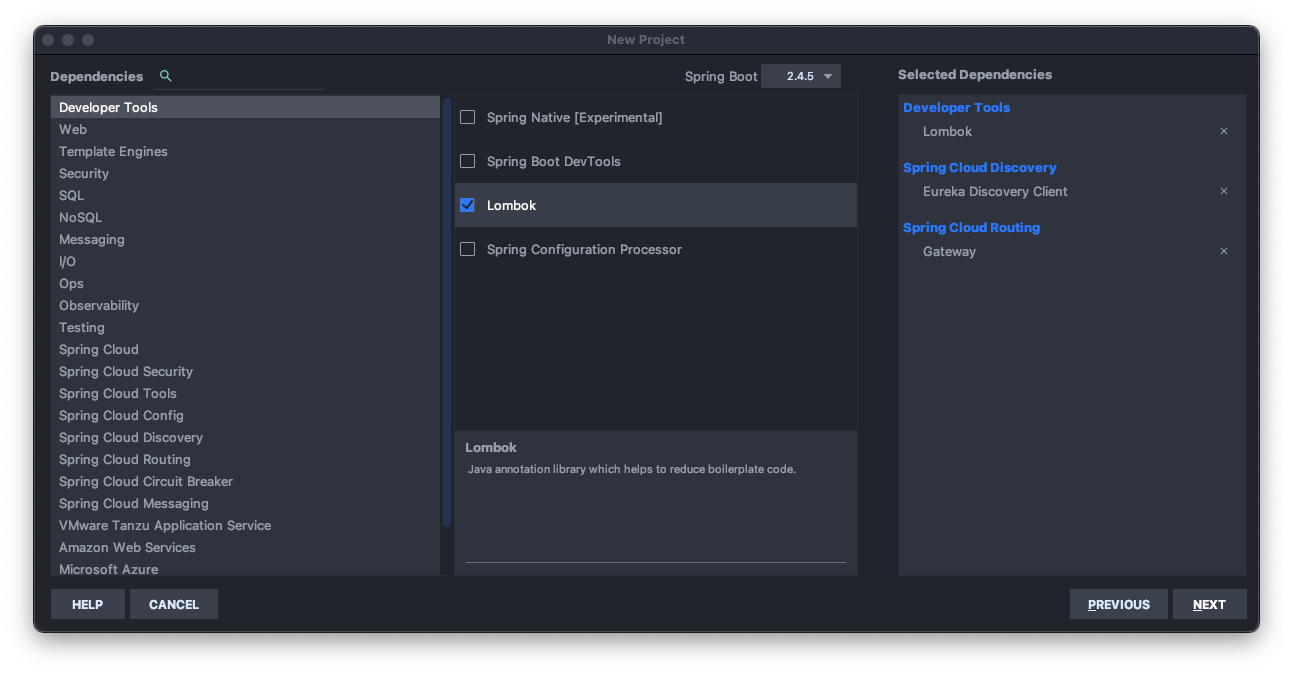 우선 Gateway를 Eureka Client로 동작시키게 하기 위해서 Eurke Client 의존성과 Spring Cloud Gateway 의존성을 함께 추가시켜보자.