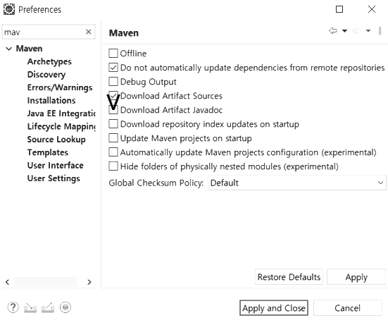 eclipse로 개발할 때 maven으로 다운받은 jar의 소스와 javadoc을 자동으로 붙이기