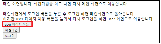 이제 "user 페이지 이동" 버튼을 누르면 /login 페이지로 자동으로 이동하게 됩니다.