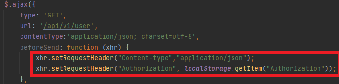 페이지 이동이 아닌 Rest Api로 구축된 Api에는 ajax를 사용할 때는 Header에 값을 추가할 수 있습니다.