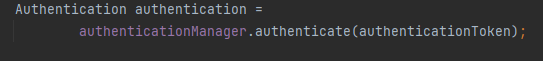 JWT 방식에선 loadUserByUsername를 수동으로 호출해야 하기 때문에 아래와 같이 authenticate 메소드를 실행합니다.
