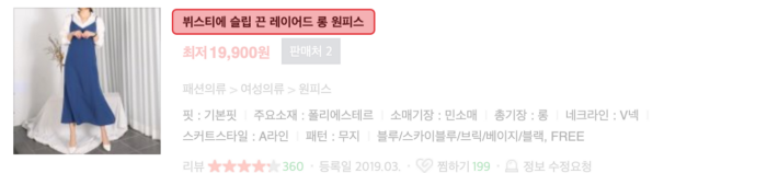 - 띄어쓰기가 없는 상품명이 있다. 한글의 특성상 띄어쓰기가 없어도 의미 해석이 가능하다.