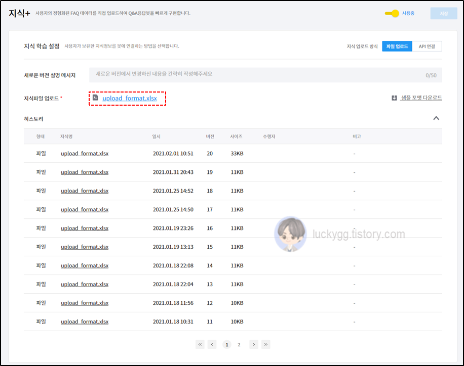 지식+ 파일 업로드 및 히스토리 이력 보기