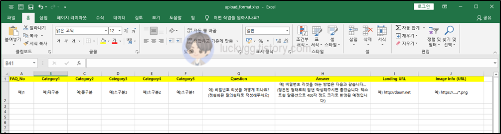 샘플 포맷을 열어보면 아래와 같은 구성으로 예시가 작성되어 있습니다.