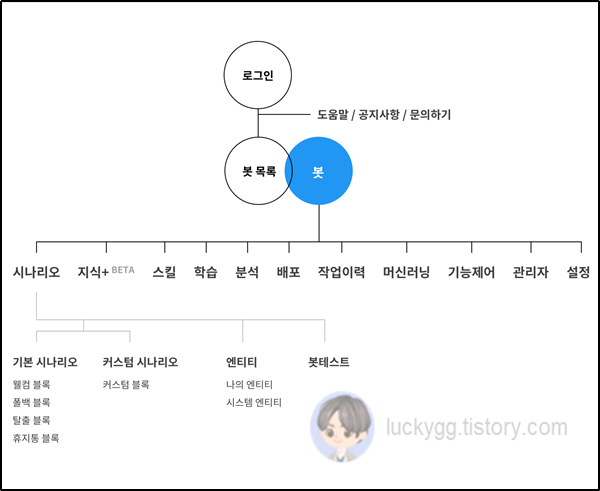 | 탈출 블록(Exit) | 사용자가 대화를 초기화하거나 탈출하고 싶을 때 쓰는 사용자 명령어를 의미합니다. |
