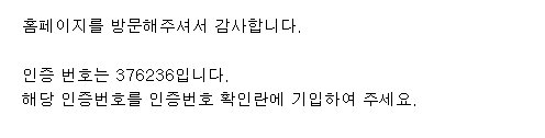 "해당 인증번호를 인증번호 확인란에 기입하여 주세요."; //이메일 내용 삽입