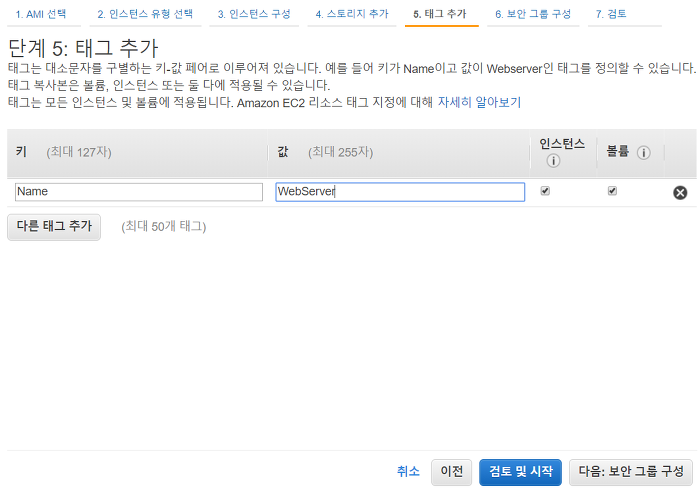 - 보안 그룹 할당: [새 보안 그룹 생성]하여 추후 새로 만들 서버들에게도 동시에 적용 가능하다