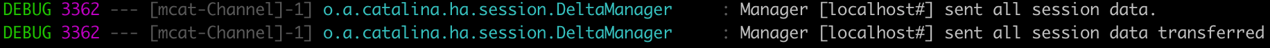일단 was1, was2 기준으로 각각 주석으로 구분해서 설정하고, ec2 2대에 각 업로드해서 was1로 접속해보니 was2번 아래와 같이 세션 정보 받았다는 로그는 찍힌다.