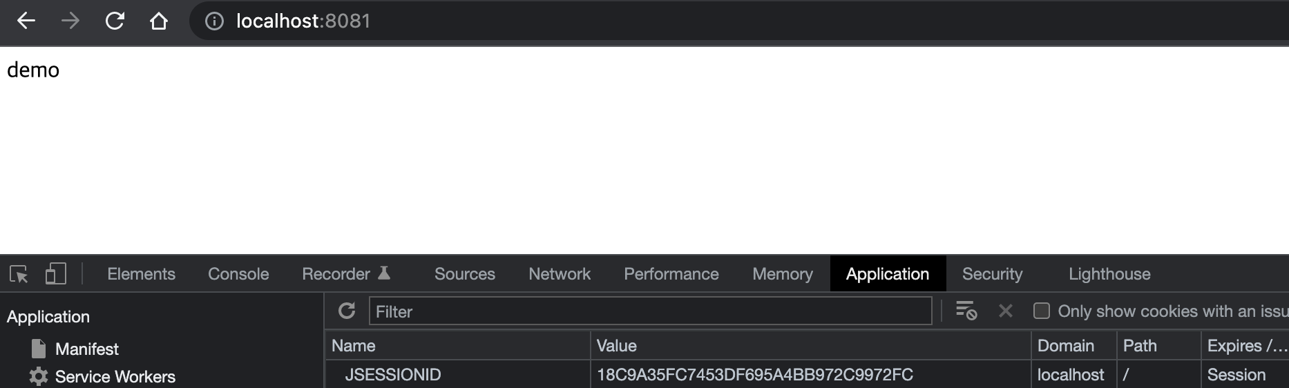 위의 설정을 포함한 간단한 SpringBoot 어플리케이션을 Local에 8080, 8081 포트로 2개를 실행한다. 그리고 같은 브라우저에서 각각 localhost:8080, localhost:8081을 접속 했을 때 JSESSIONID가 동일하게 공유되는 것을 확인할 수 있다.