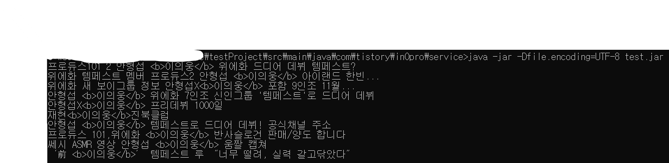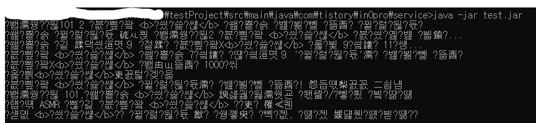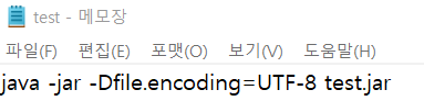 java -jar test.jar 이렇게 실행하면 아마 한글이 다 깨져서 나올 것이다.