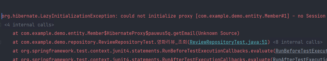 Review 클래스의 member에 대한 fetch방식이 LAZY면 한번에 Review와 Member를 조회할 수 없음.