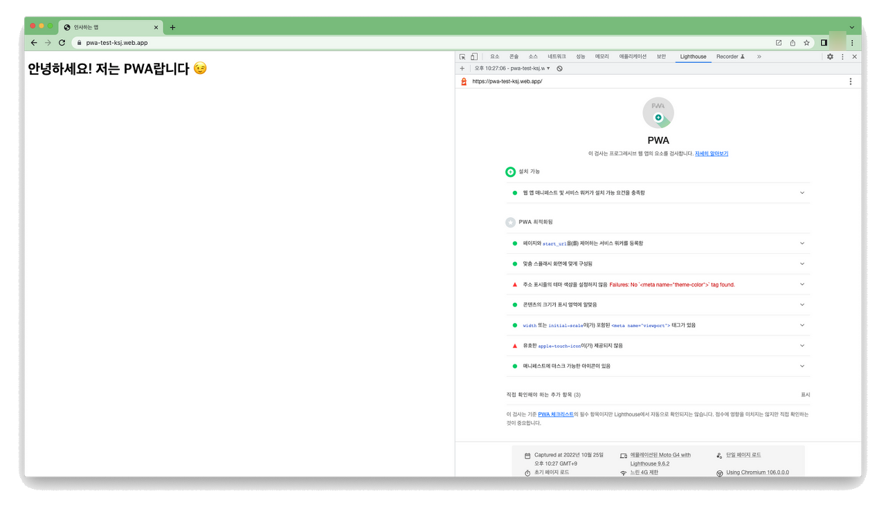 *PWA 적용한 후의 결과