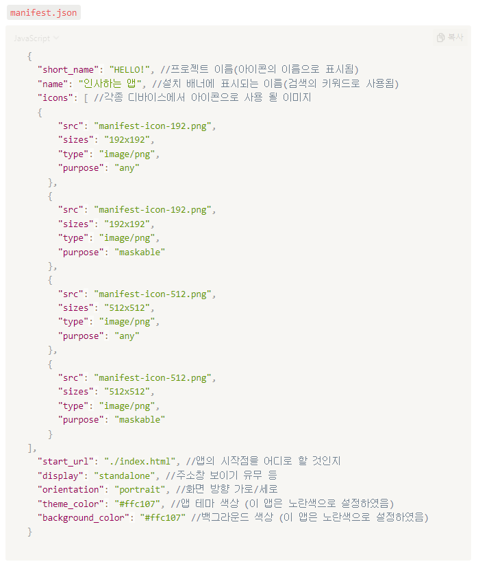 1) Web App Manifest JSON 파일