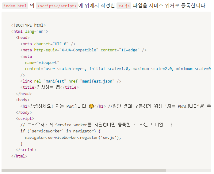 - PWA를 가능하게 하는 요소