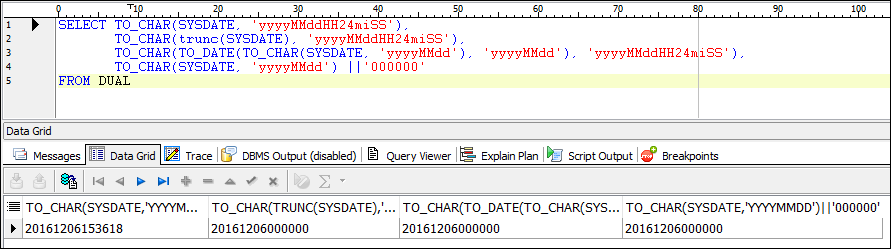 TO_CHAR(trunc(SYSDATE), ‘yyyyMMddHH24miSS’)