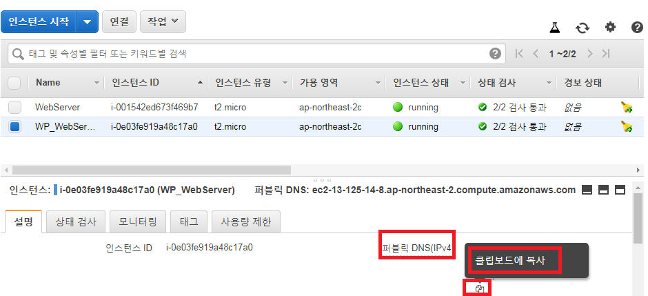 (하단 퍼블릭 DNS를 복사)