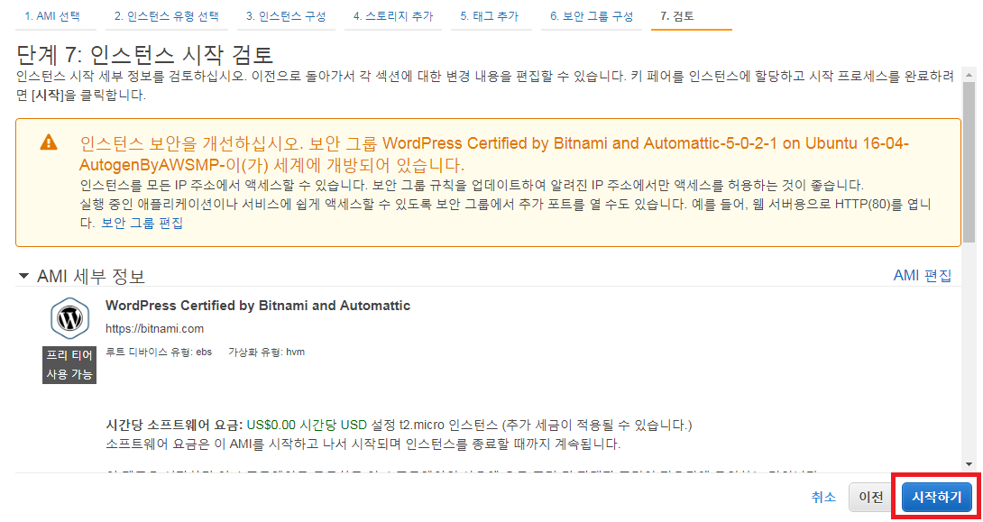 - 인스턴스 시작, AMI 설치는 이로써 완료 되었다.