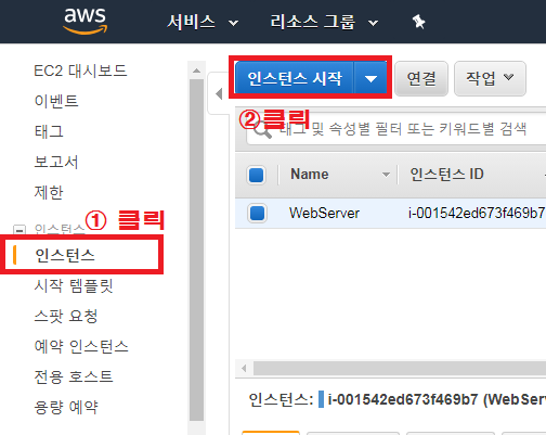 ▶ 1. 인스턴스 시작 클릭