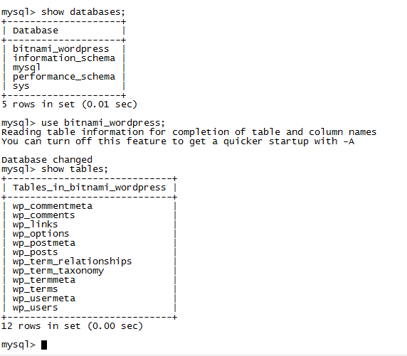 - use bitnami_wordpress;
