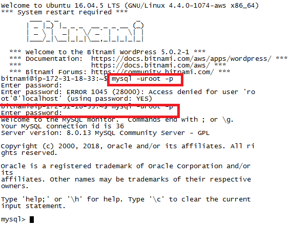 - 다시 접속하여 비밀번호 변경이 올바르게 되었는지 까지 확인해주면 완벽하다.