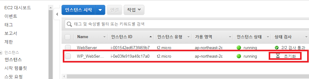 - 인스턴스 화면으로 돌아가 보면 새로운 AMI 가 추가되었고 초기화 중임을 확인 할 수 있다.