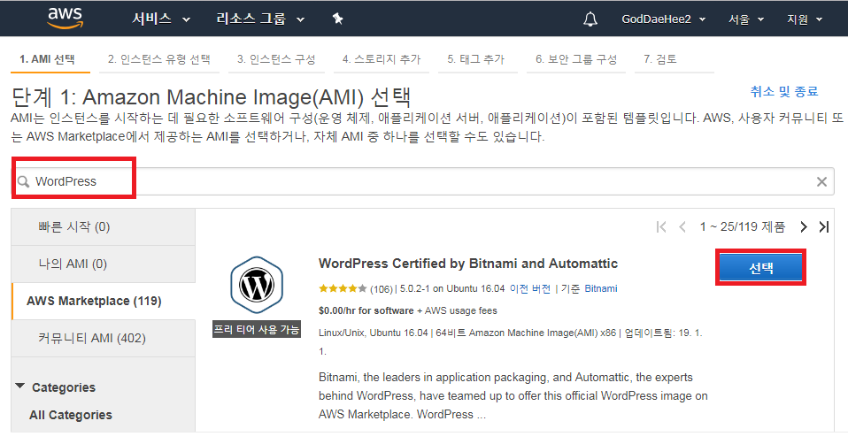 [AWS] 6.AWS MarketPlace 사용방법 (EX. WordPress 설치)