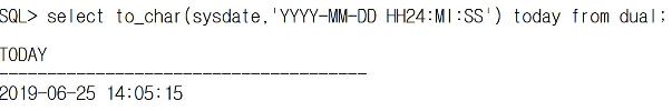 | HH24:MI:SS | 시분초를 24시 기준으로 출력한다. HH24 : 24시를 기준으로 출력 [출력형태] 14:02:20 |
