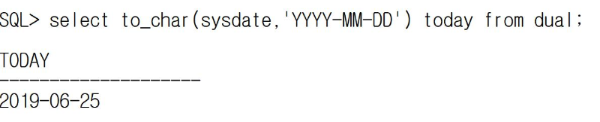 | YYYY-MM-DD | 년월일을 추출한다. YYYY : 년도 MM : 월 DD : 일 [출력형태] 2019-06-25 |