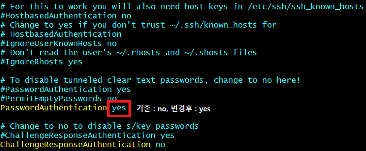 - PasswordAuthentication : yes로 변경하여 준다.
