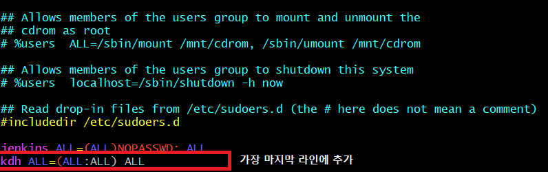 4. sudoers에 생성한 유저 추가.