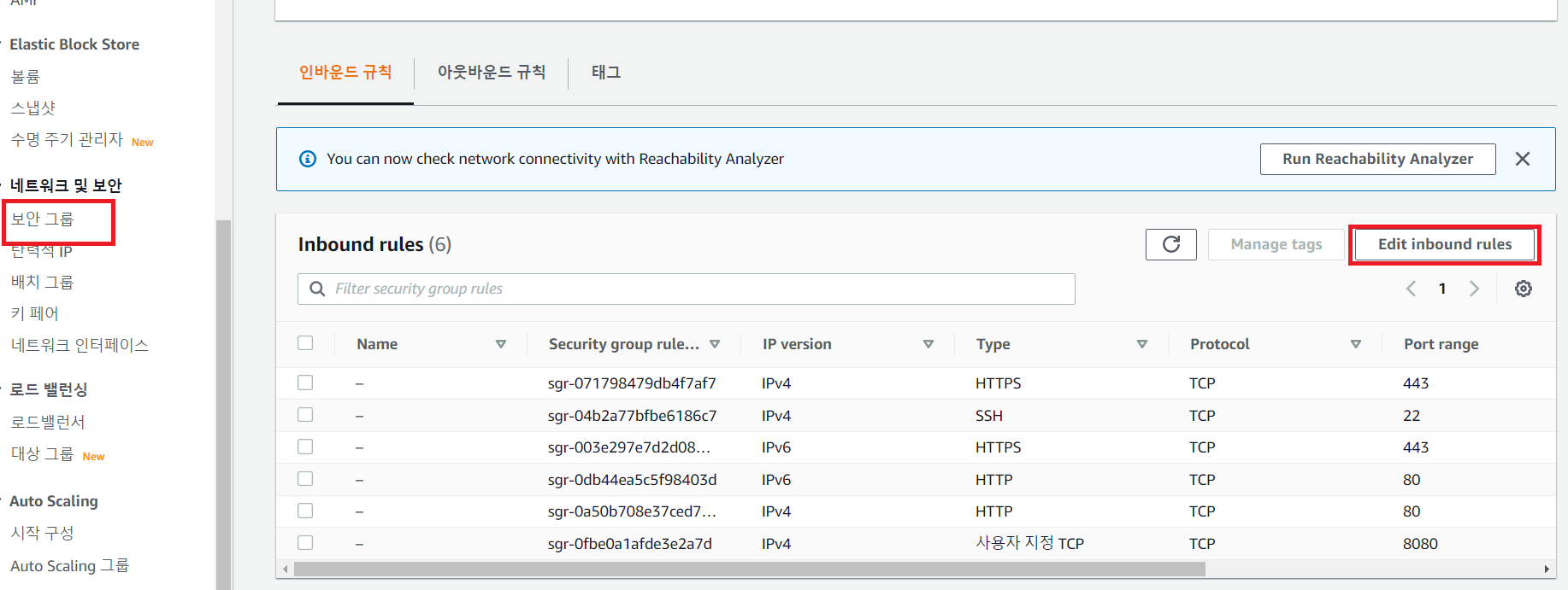 7. EC2 보안 그룹(규칙) 설정