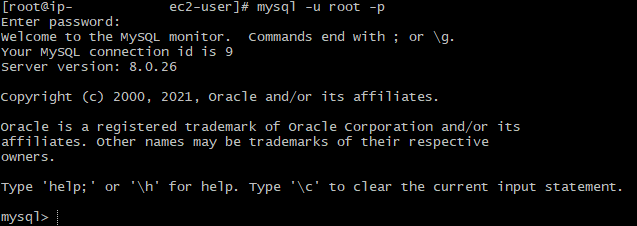 - 다음 명령어를 통해 접속 및 비밀번호 입력