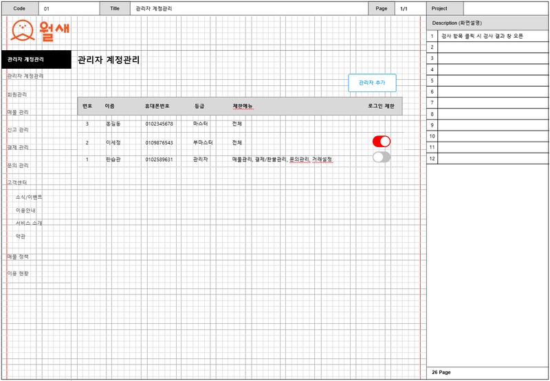 PC 웹 스토리보드 그리드 양식을 첨부합니다.