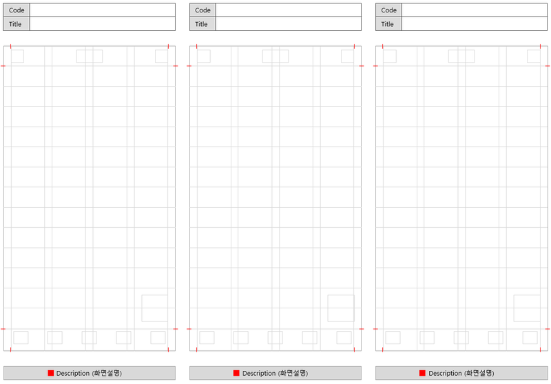 모바일 화면을 그리기 위한 스토리보드 양식은 그리드 시스템을 적용하여 만들었습니다.