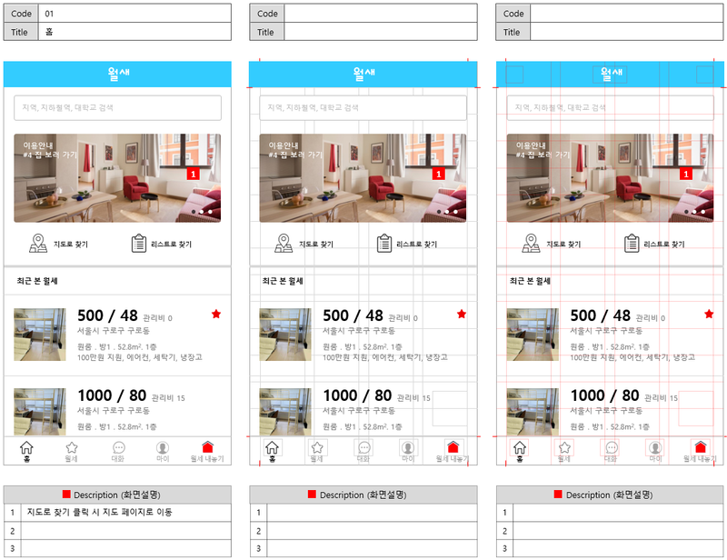 이해를 쉽게 하기 위해 세 번째 화면은 그리드를 화면 구성 위에 놓아보았습니다.