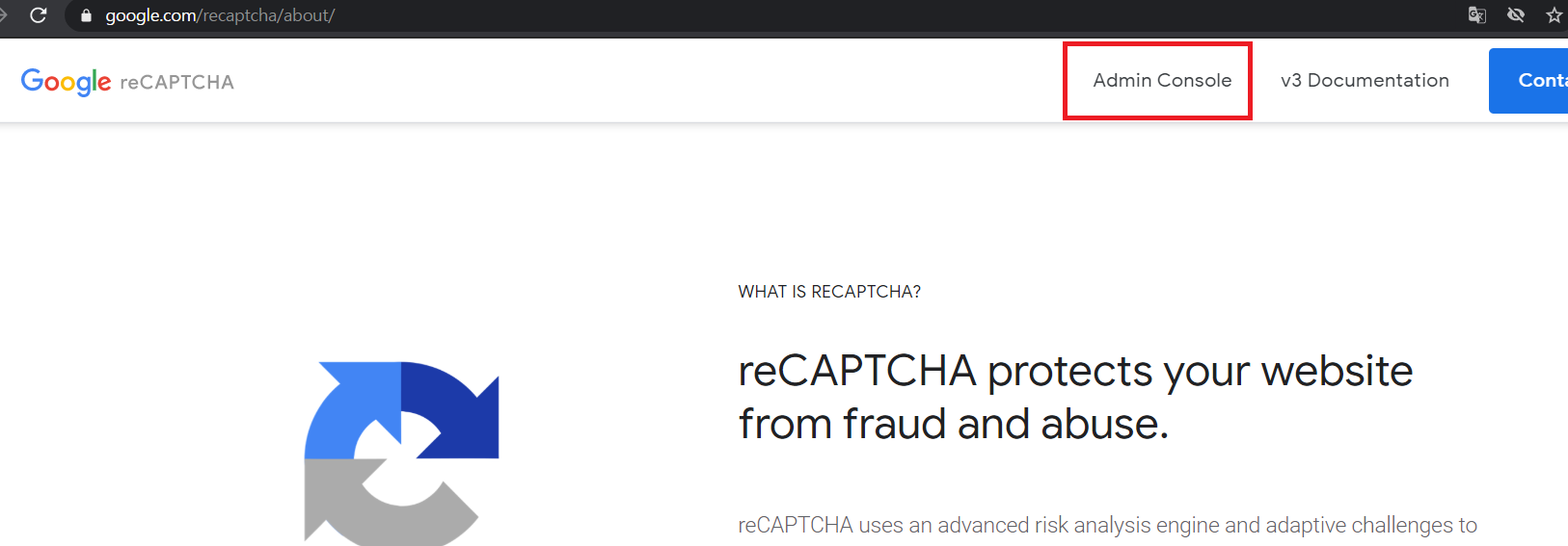 - 여기를 클릭하여 [Admin Console]로 이동하여 reCAPTCHA를 생성합니다.