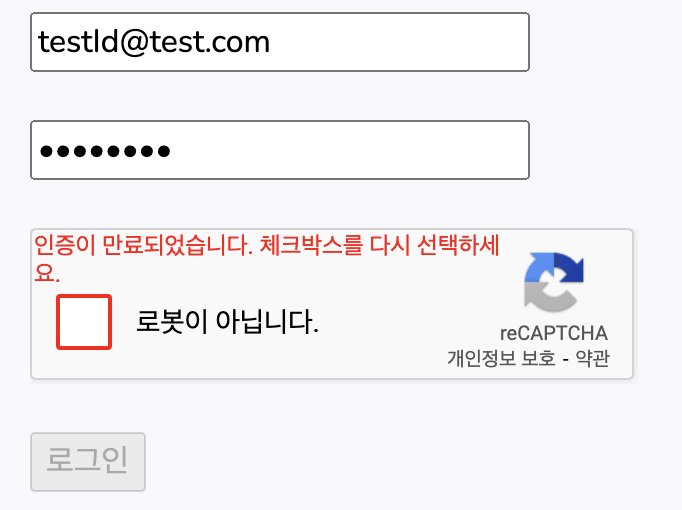 - 로그인 시도는 reCAPTCHA 인증이 성공해야 시도 할 수 있도록 합니다.