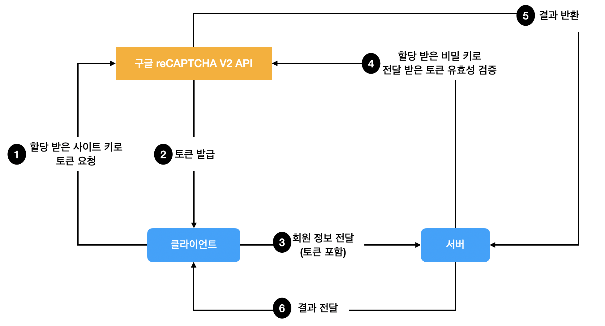 - 로그인 시도가 들어오면 리캡차 검증을 진행 후 통과하면 로그인 진행, 통과 실패 시 검증 실패를 전달합니다.