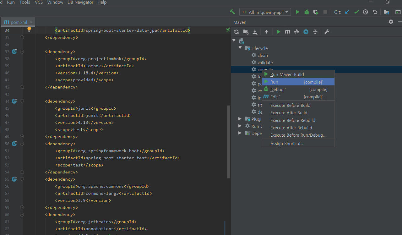 intellij에서 컴파일은 이렇게 하면 된다.