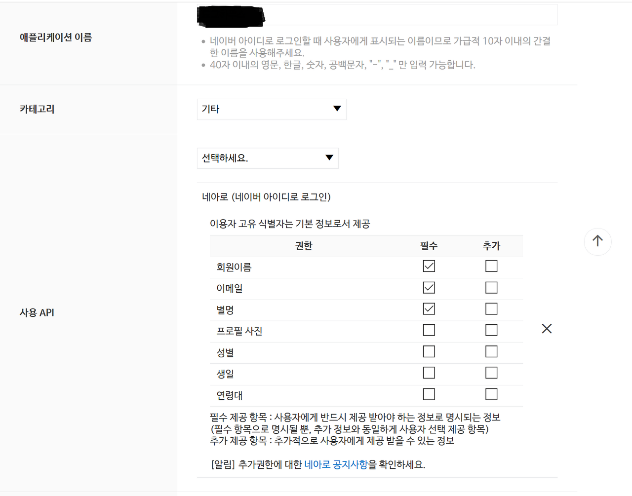 다만, 사용자가 네이버 자체에서 정보제공 동의를 하지 않은 항목의 경우엔 필수로 받아온다고 체크를 해도 사용할 수 없습니다.